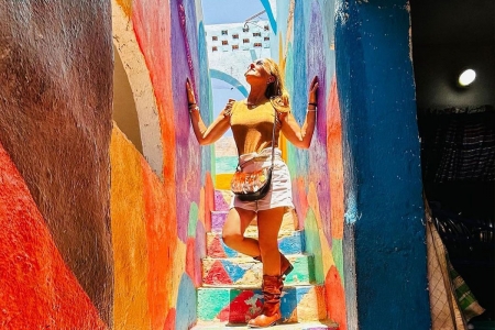 - Des couleurs vives comme le bleu turquoise, le jaune ocre, le rose et le bleu ciel